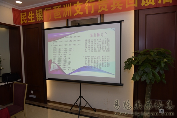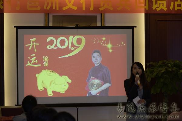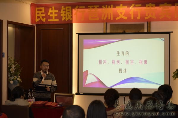在2019年春节前,受民生银行邀请,举行贵宾回馈活动。银行邀请众多贵宾前来听易隐燕老师讲述十二生肖在2019年的各自运势及太岁化解方法。现场气氛隆重而热烈。易老师祝民生银行在2019年“诸事顺利”“猪年大吉”。
